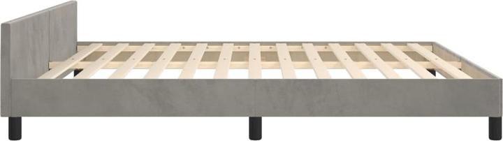 Farbe: Hellgrau; Material: Samt (100% Polyester), Sperrholz, Holzwerkstoff; Gesamtmasse: 207 x 186 x 50 cm (L x B x H); Geeignete Matratzengrösse: 180 x 200 cm (B x L) (Matratze nicht enthalten).