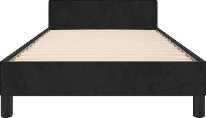 Farbe: Schwarz; Material: Samt (100% Polyester), Sperrholz, Holzwerkstoff; Gesamtabmessungen: 207 x 93 x 50 cm (L x B x H); Geeignete Matratzengrösse: 90 x 200 cm (B x L) (Matratze ist nicht im Lieferumfang enthalten).