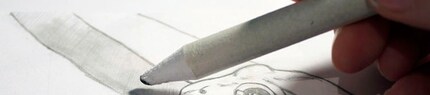 Vorab: Radieren zum Korrigieren einer Zeichnung ist keine gute Technik. Radieren zur Gestaltung ist dagegen eine Methode, um Strähnen, Lichtpunkte und ähnliches zu erzeugen und wirkungsvoll ins Bild zu bringen. Das geht gut mit einem Radierstift, aber schadenfrei nur bei radierfähigem Papier. Nach etwas Übung lassen sich in bestimmten Situationen auch spezielle Radiermesser mit einer scharfen Klinge einsetzen. Wird dabei das Papier beschädigt, bleibt dies bei einer Überzeichnung aber immer sichtbar.