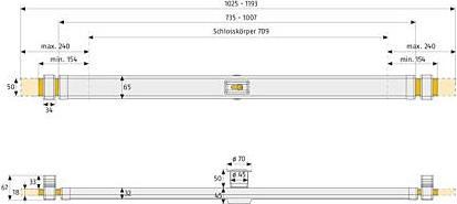 Panzerriegel PR2600 sichert die Tür über die gesamte Breite. Beide Riegel greifen fest in die mit dem Mauerwerk verankerten Schliesskästen ein, geeignet für Türbreiten von 735 bis 1030 mm, inklusive drei Schlüssel.