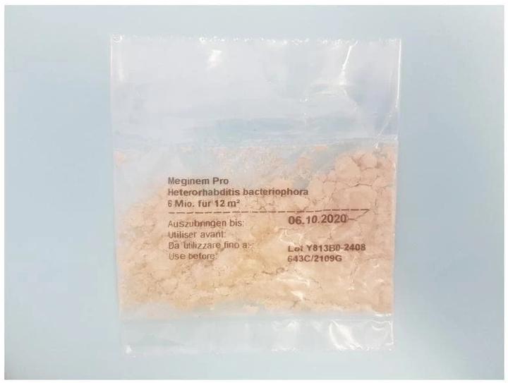 Bestellset zur Anforderung von nützlichen Nematoden (Fadenwürmer) zur umweltfreundlichen Bekämpfung der Dickmaulrüsslerlarven. Ausreichend für je 12 m² Bodenfläche. Voraussetzung ist eine Bodentemperatur von mindestens 12 °C. Die Nematoden werden nur innerhalb der optimalen Behandlungsperioden verschickt (April/Mai sowie August/September).
