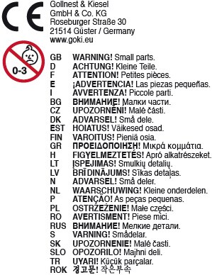 Warnhinweis Spielzeug | Achtung: Nicht für Kinder unter 3 Jahren geeignet. Erstickungsgefahr aufgrund verschluckbarer Kleinteile., Achtung: Nicht für Kinder unter 6 Jahren geeignet |