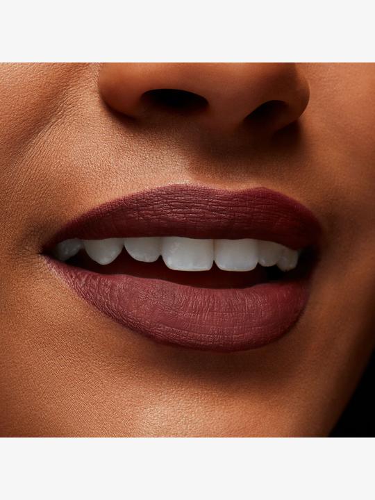 Farbe: inklusive. Komfort: extrem hoch. Erleben Sie 24 Stunden lang schwerelose, fixierte Farbe mit unserem kissfesten, abriebfesten und wasserfesten flüssigen Lippenstift. Unsere exklusive Pigment Lock-Technologie verfügt über doppelt beschichtete, ultrafeine Pigmente, die die Lippen sanft in einem unauffälligen, flexiblen, atmungsaktiven Schleier aus vollflächiger, intensiver matter Farbe umhüllen. Diese lippenfreundliche Formel ist mit nährenden Inhaltsstoffen wie Passionsfruchtöl, Kokosnussöl und Sheabutter angereichert, die ein angenehmes Gefühl vermitteln, fast wie nackte Haut. Kein Auslaufen, kein Ausfransen und keine Nachbesserungen erforderlich! Der abgeschrägte, schmalspitzige Präzisionsapplikator sorgt für mühelos glatte, intensive und gleichmässige Farbe. Er verfügt über eine spitze Spitze für fachkundige Präzision und kontrollierte Anwendung. Unser langlebigster flüssiger Lippenstift bis heute ist in einer luxuriösen, hochmodernen Verpackung eingeschlossen. Ausserdem ist er genauso einfach aufzutragen wie zu entfernen!.