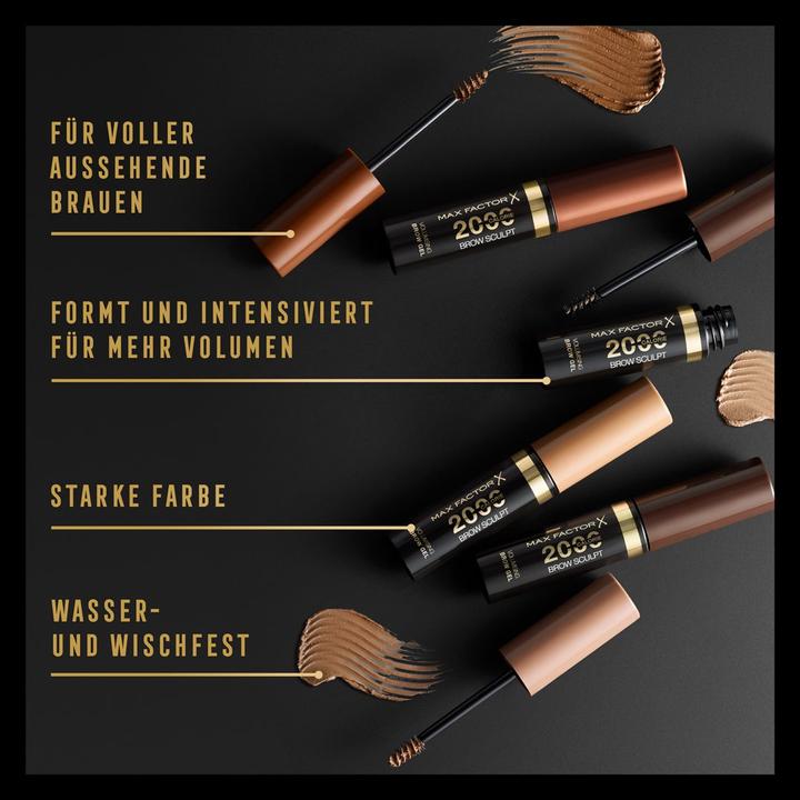 Max Factor 2000 Calorie Brow Sculpt. Max Factor 2000 Calorie Waterproof Mascara ist ein wasserfestes Volumen-Mascara. Für maximales Volumen und kein Zusammenkleben der Wimpern sorgt eine spezielle Bürste mit weit auseinanderstehenden Borsten, die die Anwendung der idealen Menge an Mascara garantiert.