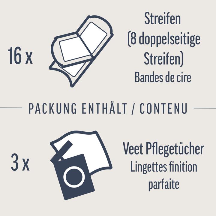 Mit Veet Kaltwachsstreifen Easy-Gelwax Technology für sensible Haut können Sie sich über bis zu 4 Wochen seidig glatte Haut freuen.