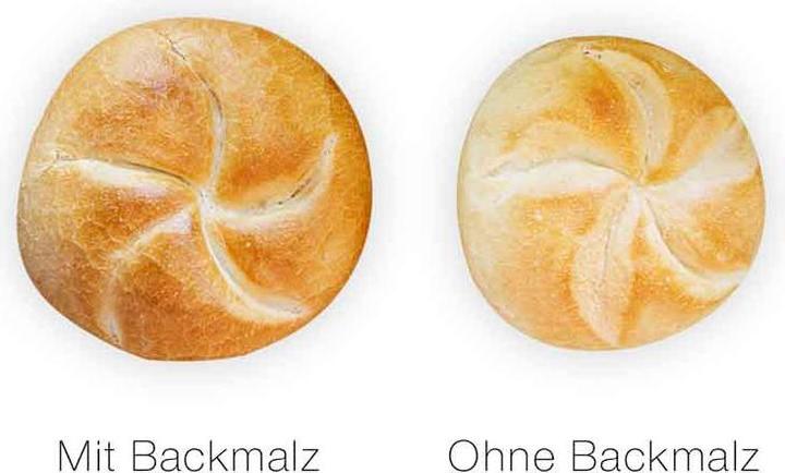 Backmalz verleiht Broten und Brötchen ein leckeres Aroma, eine knusprige Kruste, ein saftiges und wattig weiches Inneres sowie eine beschleunigte Gärung. Backmalz ist ein natürliches Produkt aus gerösteter und gemahlener Gerste oder gleich verarbeitetem Weizen. So backen Sie im Handumdrehen aromatische und schön gefärbte Brötchen aus einem schnell aufgehenden Teig.