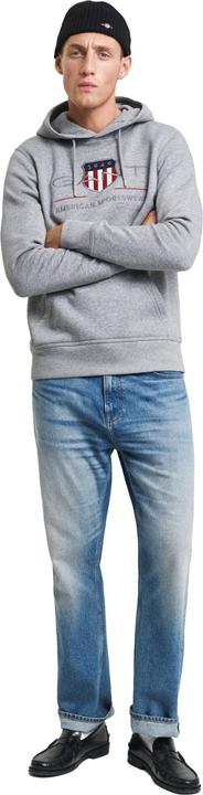 Hoodie für Herren von der Marke GANT. Hergestellt aus angenehm weichem Loopback-Jersey mit einem Baumwollmix. Verfügt über eine gestickte GANT-Wappen und eine Kängurutasche.
