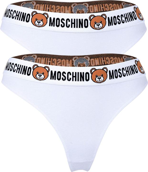 Einfarbige Slips für Frauen von der Marke Moschino. Hosen mit Logo und Bärenmotiv am Bund. Im Doppelpack. Extrem angenehm zu tragen.