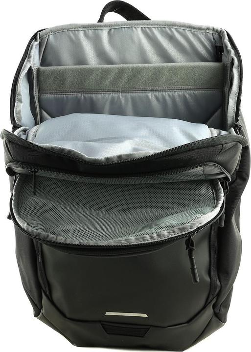 Ein besonders leistungsfähiger Laptoprucksack. Ein robuster, wetterfester 26L-Laptoprucksack für Sport, Reisen und Alltag. Bequem zu tragen. Die atmungsaktiven Schultergurte, das gepolsterte Rückenteil und der verstellbare Brustgurt sorgen für bequemes Tragen. Verstaue Deinen Laptop in der dick gepolsterten Hülle, die sowohl von oben als auch von der Seite zugänglich ist. Langlebiges Design, recycelte Materialien. Dieser Rucksack aus strapazierfähigem 900D-Gewebe mit PFC-freier, langlebiger und wasserabweisender Beschichtung erbringt Höchstleistungen: Er hält den Beanspruchungen Deiner Abenteuer stand und schützt Deine Ausrüstung vor den Elementen. Alle Aussen- und Innenmaterialien, Gurtbänder und Netzstoffe werden aus 100 Prozent recycelten Materialien hergestellt. Technische Daten: Masse: 21 x 30 x 53 cm, Gewicht: 0.9 kg, Volumen: 26 L, Materialien: Polyester.