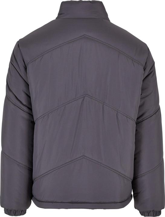 Das herausstechende Merkmal der einfarbigen Herren Pufferjacke ist ihre parallele, pfeilförmige Quersteppung – sie verleiht Dynamik und Präsenz. Die Pufferjacke ist mit einem hohen Stehkragen sowie elastischen Ärmelbündchen ausgestattet und besitzt zudem Seitentaschen sowie eine Innentasche. Zur individuellen Einstellung der Grösse steckt im Saum ein Kordelzug mit Stopper. Der Front-Reissverschluss der Herren Pufferjacke ist verdeckt. Sie sitzt bequem als Regular Fit und besteht aus Polyester. Im Inneren ist sie mit Taft gefüttert.