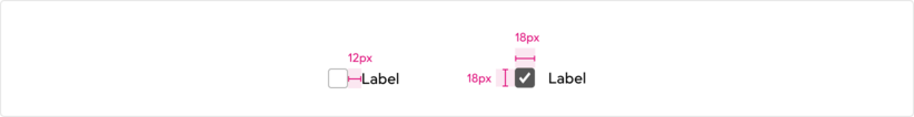 The label’s font size differs between desktop (14px) and mobile (16px).