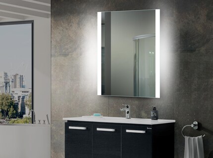 First off, it’s important to distinguish between functional and harmonious lighting: Ideally, you can find both in one lamp. To evenly illuminate your face, the light above your mirror cabinet should be frontal and broadly diffused. Wall lamps to the left and right of the mirror are perfect for the job. For the bathtub, it’s best to go for soft, dimmable light that creates a relaxed atmosphere. Add glowing touches with hanging pendant lights.