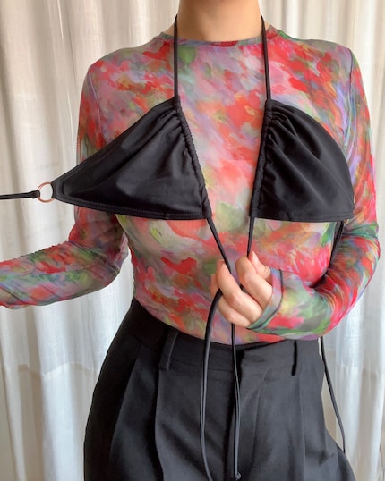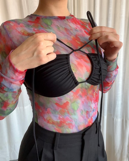 Show allLet’s start off with what’s probably the most popular alternative, which was already quite the hype last year. Rightly so, in my opinion; as my shake test showed, compared to the standard way of tying the top, the risk of a nip slip is minimal. Here’s how to tie it: turn your bikini by 180 degrees so that the tips of the triangles are facing down. Now, tie what are technically the back strings together at the nape, and what are technically the neck cords around your back. Give the top a little tug and a jerk, and there you have your not-really-new new bikini.