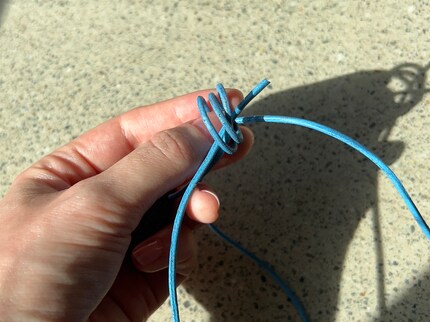 Step 3: Flip the whole thing over and repeat Step 2. You can adjust the length of the cord by pulling the two knots apart and tightening them.