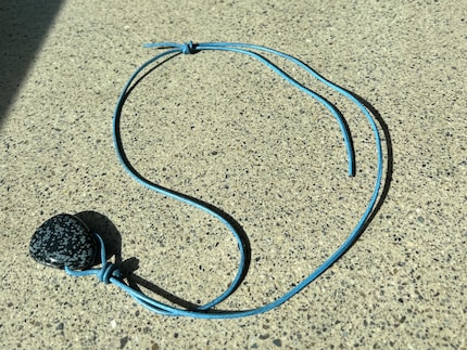 If you have an ordinary pendant, you can simply thread the cord through it. However, attaching it to a simple loop referred to as an anchor stitch is usually nicer. This also works when using a charm with a large hole in the middle. If you’ve got one of these, you can tie an anchor stitch at the left and right instead of the top, allowing you to wear the necklace tight around your neck.