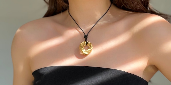Leather bands, macramé yarn and velvet ribbons are all suitable materials for the cord, and you can opt for colourful versions if you’d like. The cord can be knotted to form a long pendant, short necklace or choker. You also have the option of wrapping it around your neck several times and tying it into a decorative bow at the front. One thing to be aware of is that thinner cords sit better as a bow. Thicker ribbons, on the other hand, are more stable and are well-suited to large charms.