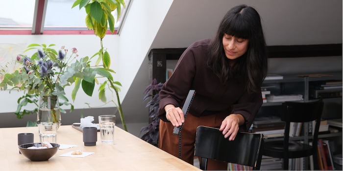 Show allLooking for a suitable chair design can quickly become overwhelming. Our range of chairs comprises over 5,000 styles. As dining chairs are often a big investment because you buy more than one, I asked expert Esther Angulo for her advice. The interior designer has sourced countless pieces of furniture for both private and public projects. Hotel Walther in Pontresina and restaurant il baretto (in German) in Zurich are just two examples. I met Esther at her home in Basel. «You have to make a checklist and ask targeted questions at the start,» she suggests, «then simulate and get creative.»