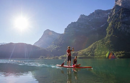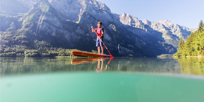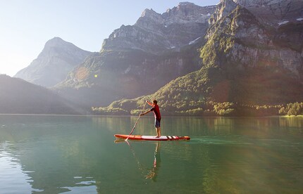 By Swiss law, you have to wear a life jacket if you are paddling more than 300 metres from the shore. Even if you aren’t as far out, always make sure you can swim back to shore if an accident happens – for example, if the water is freezing or there is an offshore wind.