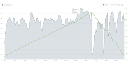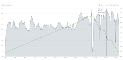 - Florian's heart rate at the end of the ascent was the highest of the two of us at 169 s/min