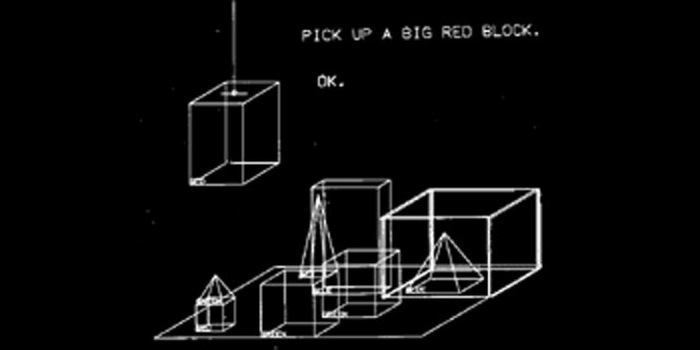 Shrdlu consists of a simple 3D scene made up of cubes, pyramids and a box. Users can give it instructions to change the scene, such as stacking blocks on top of each other or placing them in the box. Shrdlu then updates the image. The program lets you know if a command can’t be executed, such as placing a block on top of a pyramid. It also tells you if it doesn’t know which block to choose because several of them fit your description.