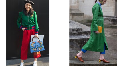 As this trend has its origins in fashion, I'll also show you how you can implement it in this area. In 2017, the combination of pink and red was particularly popular. Ochre and green were also seen everywhere. Royal blue and orange are leading the way this year. If you combine white or black as a third colour, you create a neutral counterpoint that brings calm to your outfit.