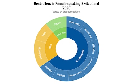 COVID had quite a firm grip on the Romands’ shopping carts – home office equipment experienced a boost in popularity. Printer ink was the best-selling product of the year on either side of the Röstigraben. While not exactly spectacular, it makes sense. After all, printing in 2020 shifted from the office to the home. In addition, people in French-speaking Switzerland are very well-connected. Whether for the purpose of working from home or entertainment, three types of cables made it into the list of the top 10 best-selling products. And, even in the crazy year 2020, there's something that remained all too familiar for mums and dads: changing diapers. Second place goes to the mobile toilet.
