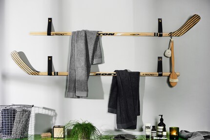 After showing you how to recycle an old snowboard and use it as a shelf, today we're showing you how to turn old ice hockey sticks into towel rails.