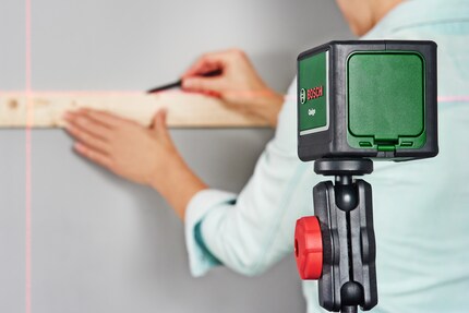 With a laser, first project a straight line onto the wall and mark the location with a pen. Then measure the gap for the hanging loops, so that the hockey sticks don't hang crooked.