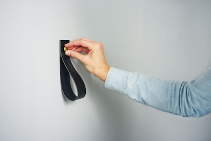 Finally, fit the brass screw covers to the leather hangers again. All you have to do now is position the stock in its new place.