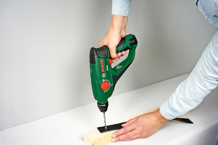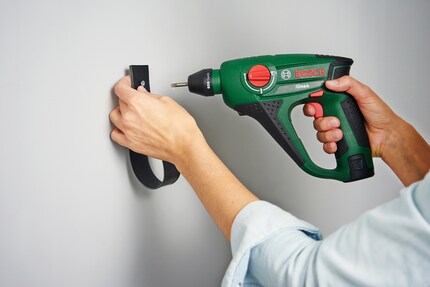 Now drill a hole in the marked places, place a dowel and screw the hanging loops to the wall.