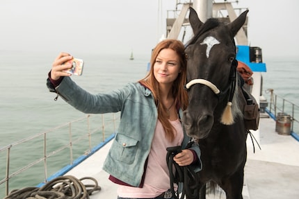 After this speeding offence, Mika changes her mode of transport and is now alone with her horse on a fishing boat. There is no sign of a captain. Either she is travelling alone, or director Katja von Garnier has decided not to cast her in this role. In any case, Mika simply stands on the deck of the ship with an easterly wind and chugs along from Genoa to Cadiz in Spain. Cadiz is in Andalusia. At the very bottom end of Spain near Gibraltar. This crossing would normally take several days. However, the two make it in just a few hours in absolutely calm seas.