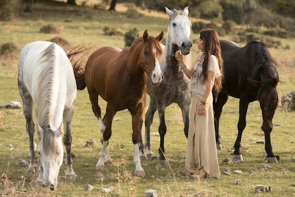 In a horse stud in the middle of nowhere in Andalusia, she discovers the brand on a horse trailer. She has reached her destination. The horse farm owner Pedro (Thomas Sarbacher) and his daughter Samantha (Lea van Acken) happen to speak fluent German. This is an advantage as Mika can't speak a word of Spanish. Somehow they don't question who Mika actually is and why she came to them from Germany with her horse. This is simply taken for granted. There's not much questioning in this film in general. It's just like that and that's it.