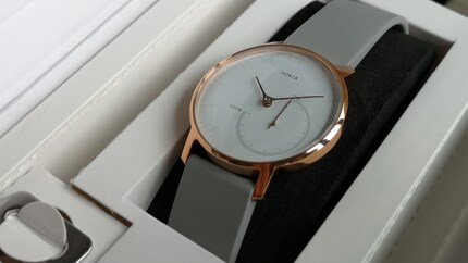 After my review of the Connected Watch from Kronaby, some of my female colleagues approached me. Their request: They are looking for a pretty smartwatch that is a little more feminine than the Apex from Kronaby. In my search for a female counterpart, I came across the "Steel" from Nokia. The connected watch not only looks like an analogue wristwatch, but also combines two trends: the colour rosé and a minimalist design. My first impression: the smartwatch is more delicate than expected and can easily pass for a conventional wristwatch. [[product:6679785]]