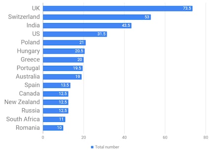 Before we give you the results, there’s a bit of explaining to do regarding the evaluation. What might sound like a straightforward task of adding up replies and stated countries of origin, is actually just as complex as people’s backgrounds. If you decide on giving each nationality one point, what do you do with a reply like this: “I was born in Russia, spent 18 years in Australia and now live in Basel.”
