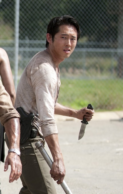 The Gerber Machete Pro is used by Glenn Rhee in season 2 episode 6 "Confessions" in the pharmacy to defend his girlfriend Maggie and himself. You can also recognise the machete in the video at the top of the page.