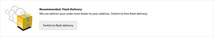 Flash delivery is available for all products that are in stock at Digitec Galaxus’s warehouses in Switzerland, weigh less than 30 kg and are smaller than 60×60×100 cm. If all products in an order can be sent by flash delivery, this option is automatically recommended to customers at checkout.