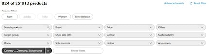 To give customers more control, Galaxus is now disclosing the country of origin of over one million fashion and sportswear items. The information is available in the product specs under «Origin». In addition, there’s now a «Country of origin» filter available for 91 product groups. Customers can use this filter to find out which of the over 25,000 sneakers in the Galaxus range are made in Germany or Switzerland, for example.