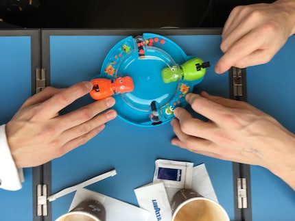 The aim of this game is to be the first to "eat" the golden ball with a hippopotamus. The game is based on a fun mix of speed, skill and luck. The small version is only suitable for two players, but is great fun! One minus point was that we got angry looks from other passengers because the game is not so quiet. We award the game four out of five stars.