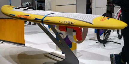 The "Waterwolf-MPX-3" is the newly developed, electrically powered high-tech surfboard. The board makes it possible to surf on lakes and rivers without wind and waves, silently and in an environmentally friendly way. It is suitable for practising take-offs and radical manoeuvres. The result is a mixture of snowboarding and surfing.