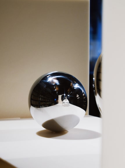 Michael Anastassiades' egg-shaped metal urn and Philippe Starck's shimmering bone on a luminous cushion show the range of designs.