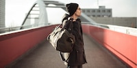 It’s not just the exterior with its glossy calfskin, comfortable straps and detachable label pendant that’s right. It’s what’s inside. In fact, across its 35 × 11 × 19 centimetres there are all sorts of zips and pockets to provide space and order for all my bits and bobs. Even a book could go in there. On other days, it’s a brolly – I’m sorted for any situation.