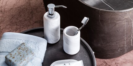 Marble was often themed in 2015 and is still trending in 2016! To keep the look noble and the Spa atmosphere emerging, combine white textiles with light marble objects and a few silver focal points. It is advisable not to incorporate any other patterns to avoid an overly agitated look in the bathroom. [[product:5337872,5337557,5337873]] [[product:5337871,5337846,5337870]]