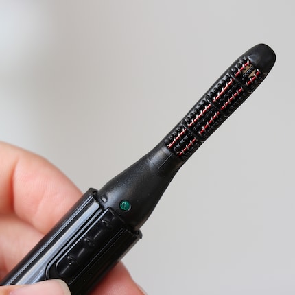 I switch the curler on and wait for it to heat up. If my interpretation of the cryptic visual language in the manual is correct, I'm waiting for the light on the curler (I'm guessing it's a light) to indicate when the device is ready. But nothing happens. After ten minutes, I just go for it: I put the curler to my eyelashes and comb them up with light pressure for eight to ten seconds, as it says.