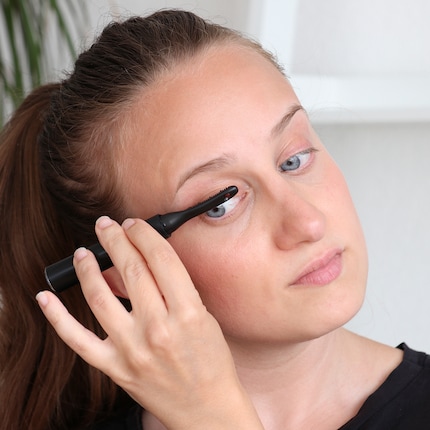 I repeat this several times because I hardly see any difference to my untreated eyelashes. I don't burn myself because I'm very careful. From time to time, I hold the comb to my eyelashes longer than indicated and put a bit more pressure on my lashes to create the lifting effect. I'm done after about six minutes. A little mascara over it, then it's time to compare my left and my right eye. The difference is minimal. Not impressive compared to what my regular curler achieves. But maybe the effect lasts longer? Nope. After one hour, both eyelashes look the exact same.