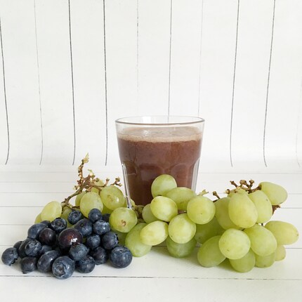 PS: You must enjoy this juice fresh - the blueberries contain pectin and this causes the juice to gel when you store it.