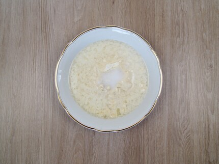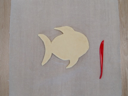 For the dough, you need two cups of flour, one cup of salt, one cup of water and two tablespoons of oil. For the glittering scales of the rainbow fish, it is best to use a few colourful sequins or beads. It is also handy if you have a bowl, a piece of baking paper and a few baking or kneading tools for the preparation.