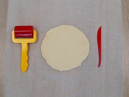 2. Using a rolling pin or kneading tool, roll out the dough to a thickness of about one centimetre.