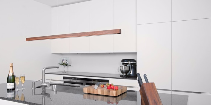 The "Tödi" pendant light is characterised above all by its special materialisation with real wood. The careful workmanship and the use of high-quality Samsung LEDs give the pendant light an elegant and sophisticated appearance. The warm white, soft LED light is extremely pleasant and does not dazzle. Another advantage is that the even light distribution does not create any disturbing shadows. The "Tödi" pendant light is available in two lengths, both dimmable and non-dimmable, in two wood finishes: walnut and oak. [[productlist:2736296]]