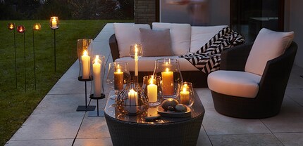 We like to sit or lie on comfortable garden furniture until late at night. Lanterns and candleholders are essential for creating a welcoming atmosphere. Here's a tip: use different sized models to create luminous landscapes. [[product:5900745,6136635,5701840]] [[product:3521980,5712449,5904479]] [[product:5635392,5901639,5823970]]