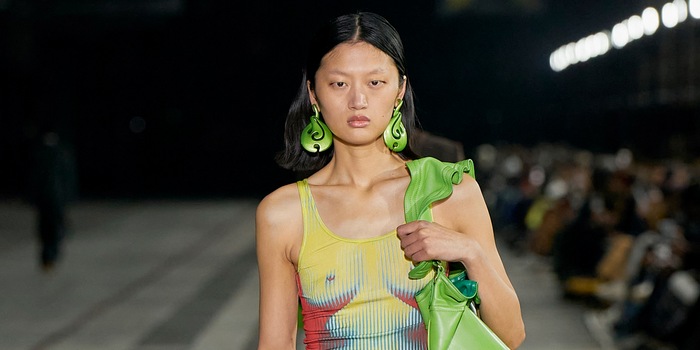 Whoever can scoop a mirage has an ace or two up his sleeve. Talking of which. In fashion, too, people love to cheat. Shapewear is used to bring into shape what would otherwise not fit into the "norm". Silhouettes are used to pull or stretch what would otherwise upset the proportions. And what if you go one step further? Pretending to wear jeans where a skirt actually dangles from the body? Flashing breasts where a tankktop actually hugs the curves? It borders on magic, doesn't it? I wonder if that's what Jonathan Anderson, creative director of the Spanish brand Loewe, and Glenn Martens, head of pretty much everything at Diesel and Y/Project, thought? In any case, for their autumn/winter collections they sent designs down the catwalk that, on first viewing, create the illusion of bare skin, certain materials or garments.